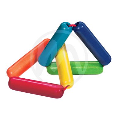 The colorful beech wood triangles are connected by an elastic band and can be twisted back and forth.